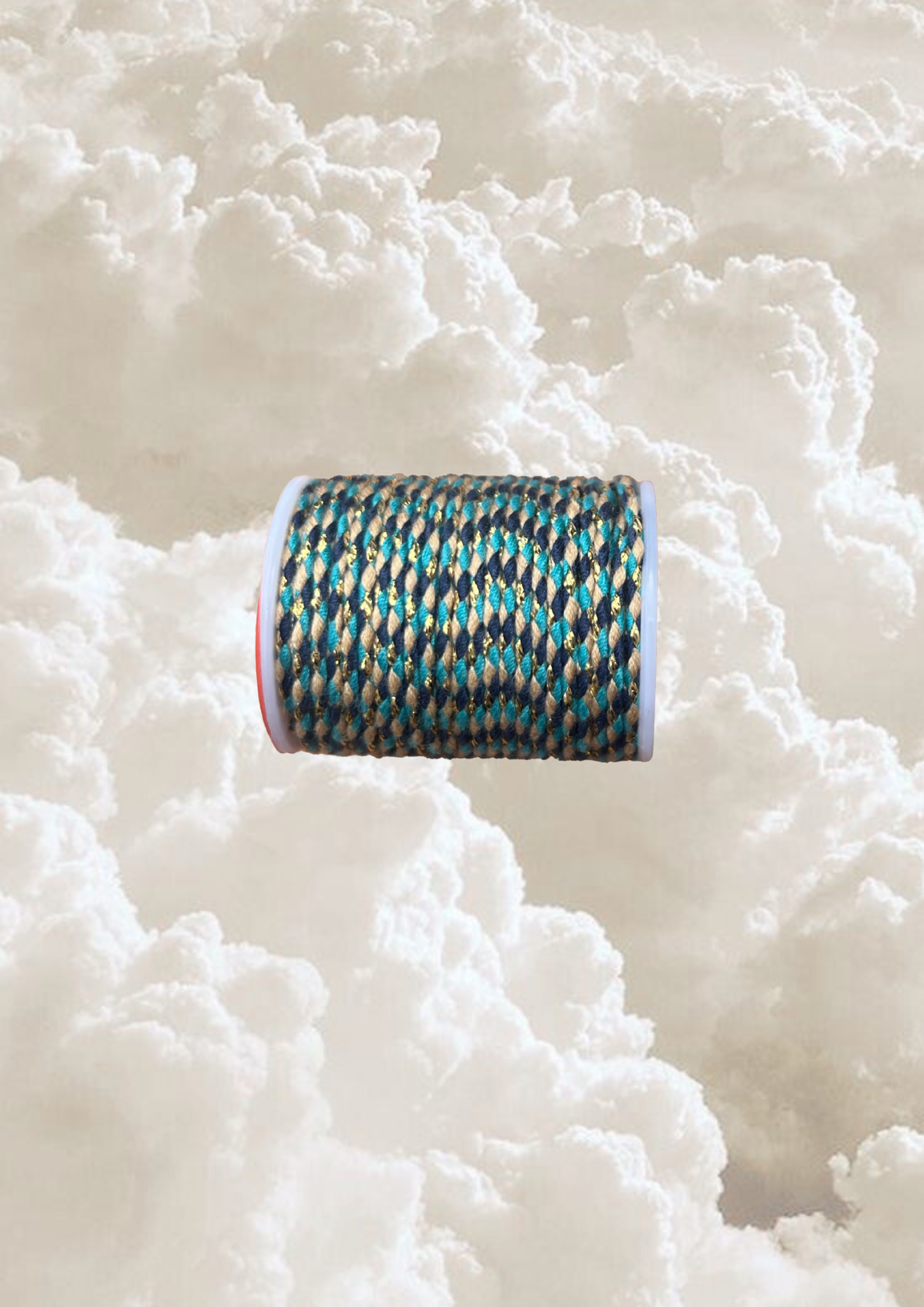 Cordon coton bleu, beige et doré